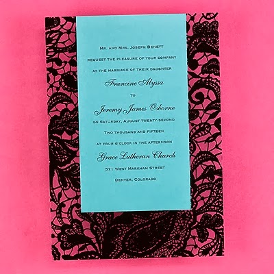 The colors are just right for an Autumn or Winter wedding. It comes with raised ink and your choice of black shimmer Reception Cards as well as Lagoon Shimmer Respond Cards and Envelopes. And guess how much this blue lagoony treasure retails for? Wait for it…wait for it…wait for it! For a small wedding of fifty (50) of your closest family and friends, this colorfully stylish invite is just $283.30! I mean the chocolate lace bodice of this wedding invitation oozes richness and says that you spent at least twice that; don’t you think?